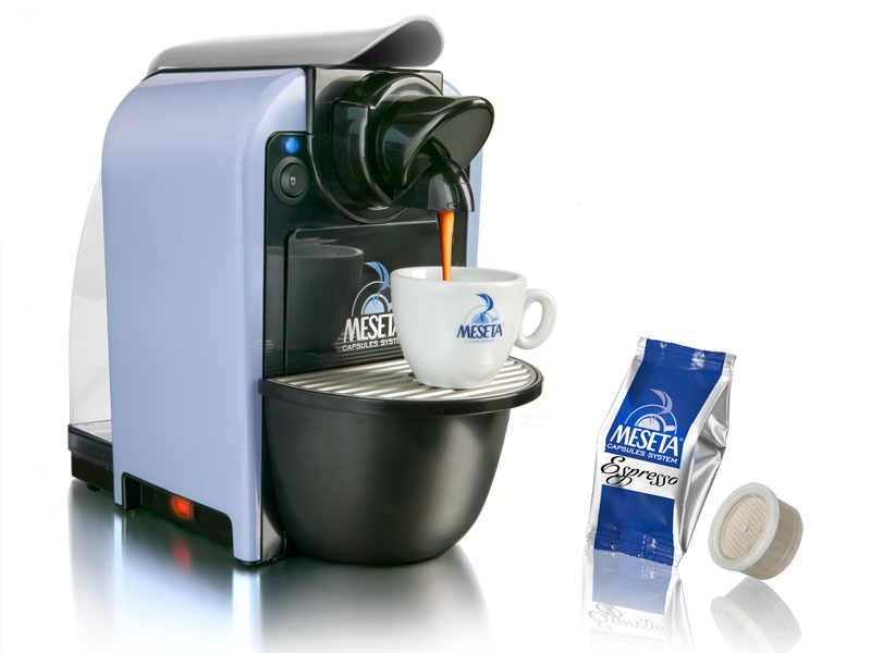 Капсульная система Meseta – это кофемашина для дома или офиса, которая работает исключительно с капсулами кофе торговой марки Meseta, специально разработаными именно для этой системы. Доступная для продажи модель этой кофемашины называется "Attimo", в голубом корпусе, который снабжен следующими специфическими чертами: